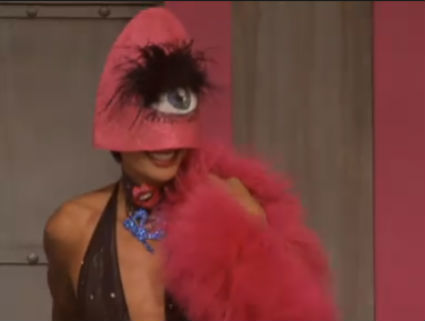 I was immediately taken with one of this year’s contestants when s/he arrived for the introduction gathering, wearing a sleeveless jumpsuit with a plunging neckline and a pink Cyclops hat covering her entire head. This wasn’t the drag that most of these “children” were used to (as a matter of fact, a few of the contestants quipped that this one didn’t stand a chance) – but was rather a throw-back to the drag to which I was introduced in the ‘80s and ‘90s, found at clubs like the Pyramid Club, Boy Bar, and Jackie 60; where self-expression through creative “looks” was more important than just looking like a woman. A good drag was a performance artist of the highest caliber.